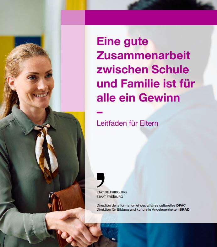 Die Zusammenarbeit zwischen Schule und Eltern ist von entscheidender Bedeutung. Die Direktion für Bildung und kulturelle Angelegenheiten BKAD hat einen Leitfaden für Familien publiziert, um ihnen in Erinnerung zu rufen, was die Schule von ihnen erwartet und welche Möglichkeiten ihnen zur Verfügung stehen, um Konflikte mit der Schule zu lösen. Den Link zu dieser Broschüre finden Sie hier: Leitfaden für Eltern
